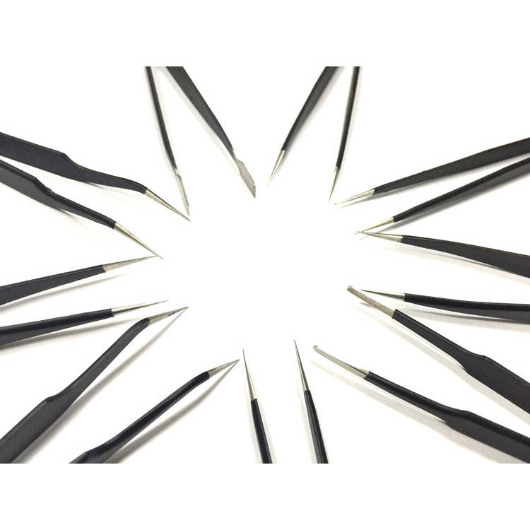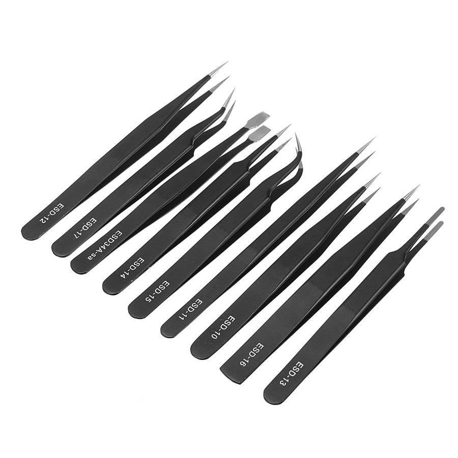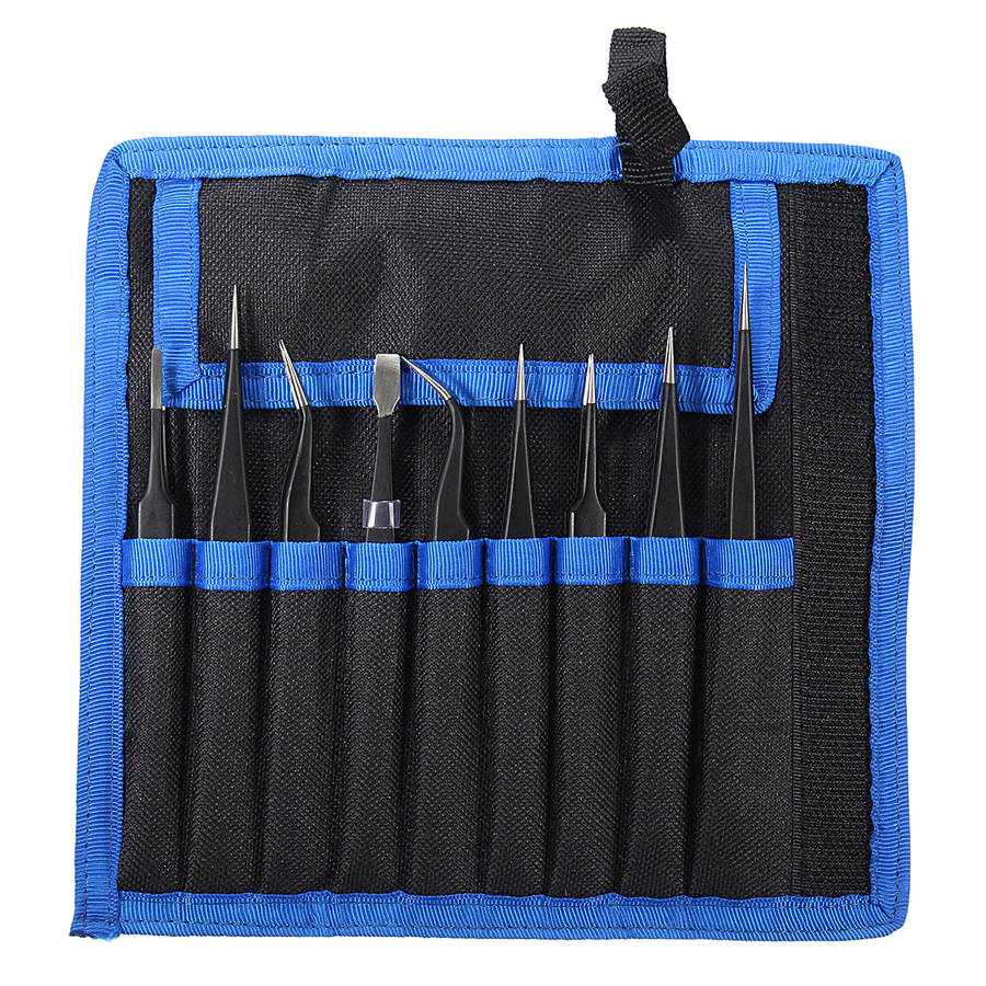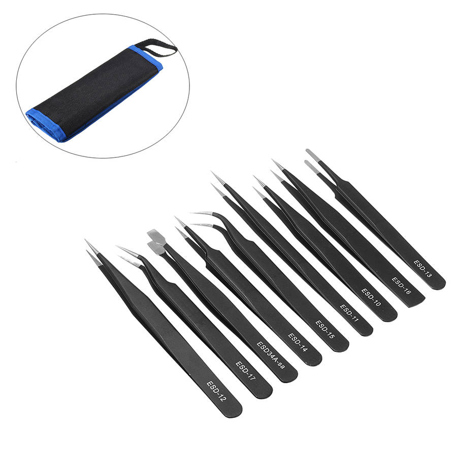 DANIU 9pcs ESD Stainless Steel Anti-static Tweezers with Storage Bag Teardown E