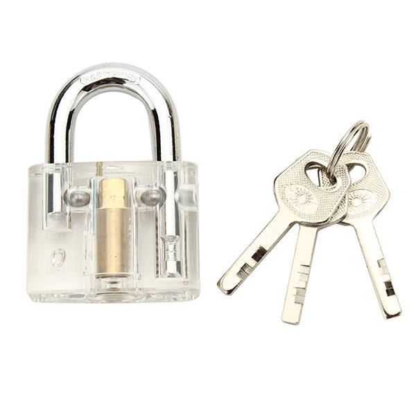 Description:Disc Type Transparent Padlock with Disc Detainer Locksmith Tools Locksmith Practice Training Skill SetFeatures:Disc Type Transparent Padlocka Can see the internal parts of the lock with the open champers . It is clearly that how the pins work with an inserted key. No loose parts or pins come out in this perfect smooth working condition. Suitable for students, technicians to study or train with the lock. Type: Disc Color: Transparent. As shown in the picture. Material: Metal Size: (L x W x H) 7.5 x 4.5 x 2cm