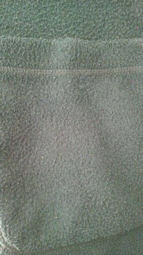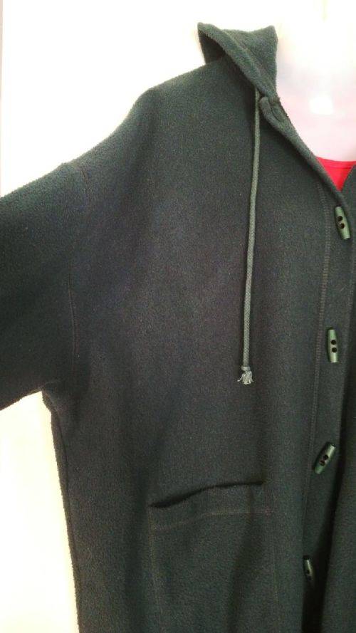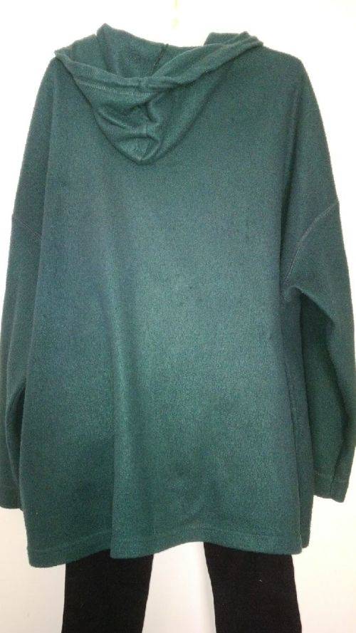 Dark green hooded fleece jacket with nice toggle buttons , this fleece is well worn but is a still a good quality item by Donna Claire