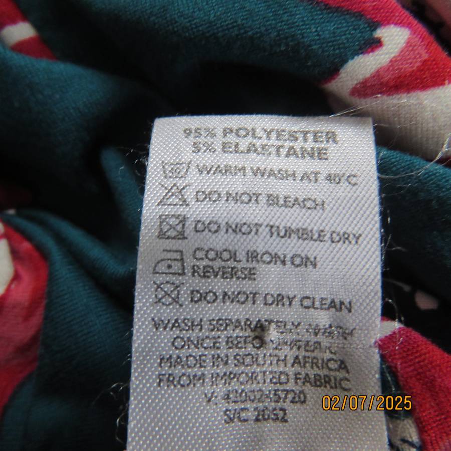 Dark jade slip over stretch polyester top with red-white flowers. Long sleeves. Size 50