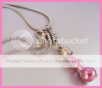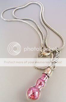DARK PINK FAIRY DUST GLASS PENDANT ON A SNAKE CHAIN