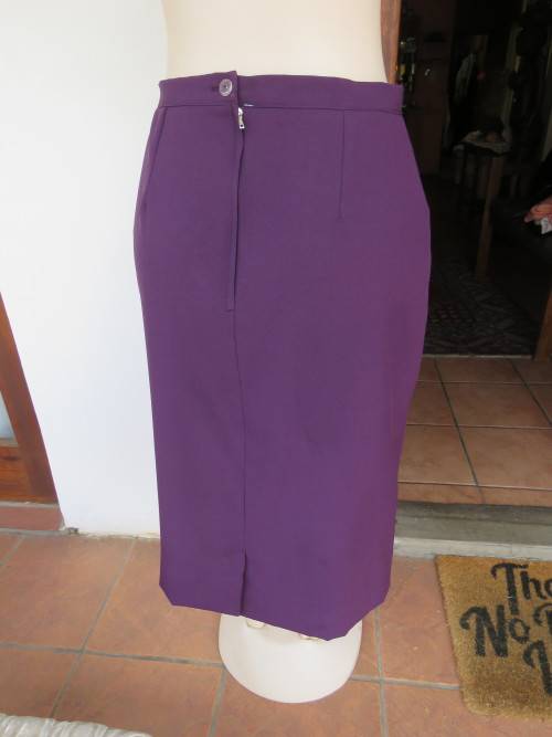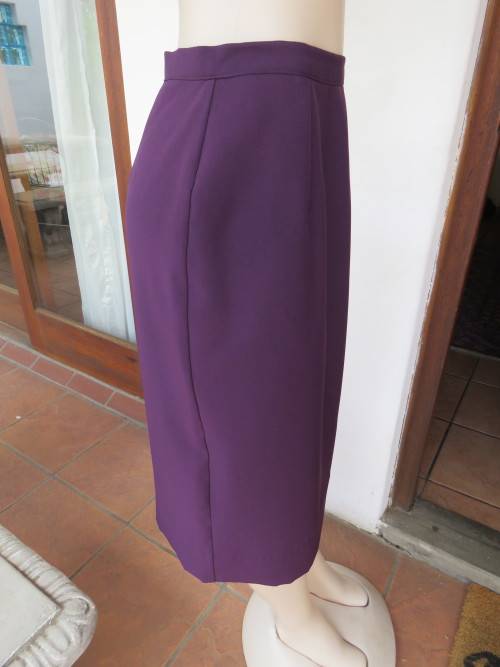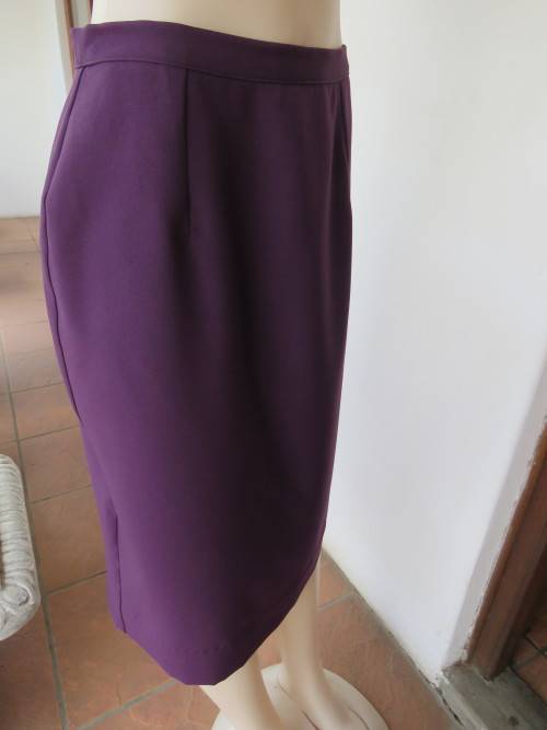 Dark purple calf length pencil skirt in 100% wash + wear polyester fabric by MICHAELA.