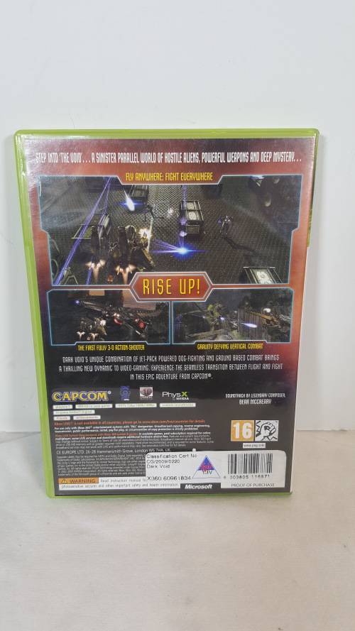 Dark Void Game. Original Disc in Original Cover. Disc has been used and is in great working condition.