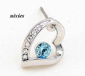 DARLING BLUE TOPAZ SWAROVSKI HEART EARRING STUDS