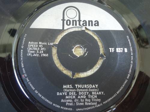 DAVE, DEE, DOZY, BEAKY, MICH AND TICH FONTANA 1968 "LAST NIGHT IN SOHO B/W MRS. THURSDAY"