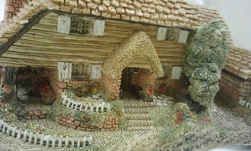 This is a delightful 1985 David Winter miniature depicting a traditional English Kent Cottage. The item is hand made and handpainted