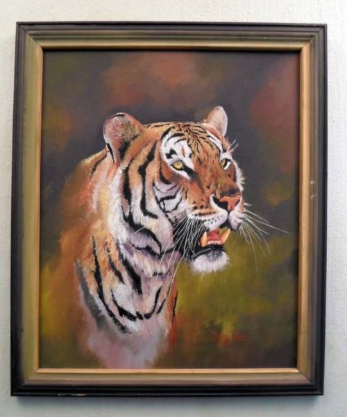 A beautiful painting of a tiger. The level of detail and composition is simply superb. The painting measures 60cm x 48cm and the frame measures 70cm x 58cm. Own this beauty today, bid now!!