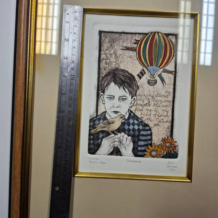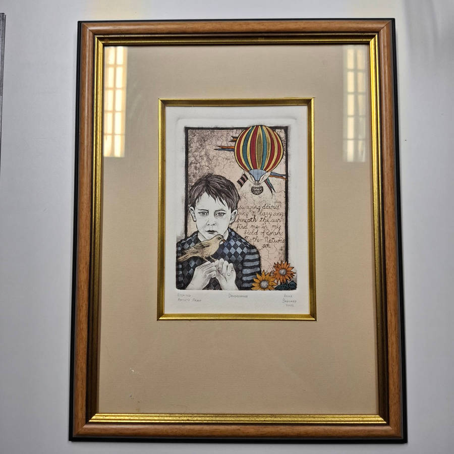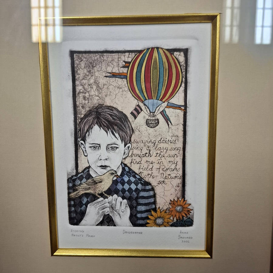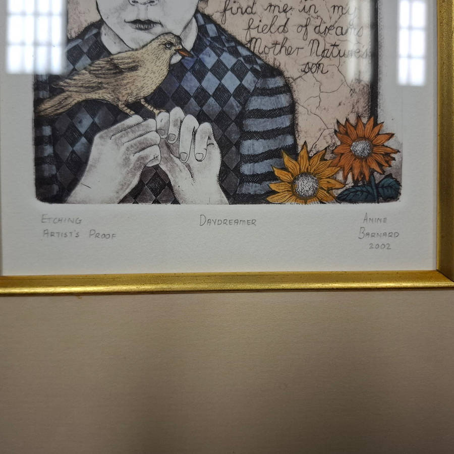 She specializes in portrait and figure studies and has been practising from her art studio at home. Working with mixed media, she portrays her immediate surroundings and situations from everyday life. Her themes are mainly women together with animals, which depicts her love for nature and simplicity. Minute details are a characteristic of her etchings. She uses vibrant colours in her pastels.