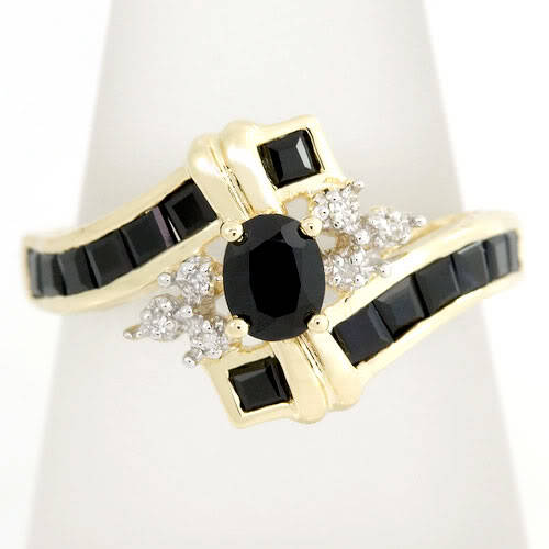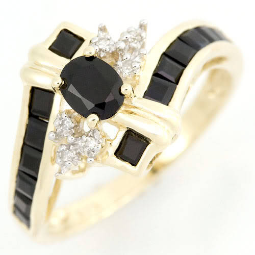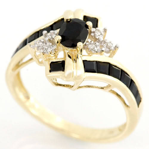 DAZZLING 1.21CT BLACK SAPPHIRE & DIAMOND 9CT 9K YELLOW GOLD RING