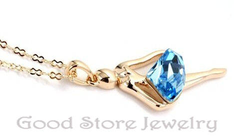 DAZZLING BLUE TOPAZ SWAROVSKI NECKLACE IN 18K WHITE GOLD CLAD