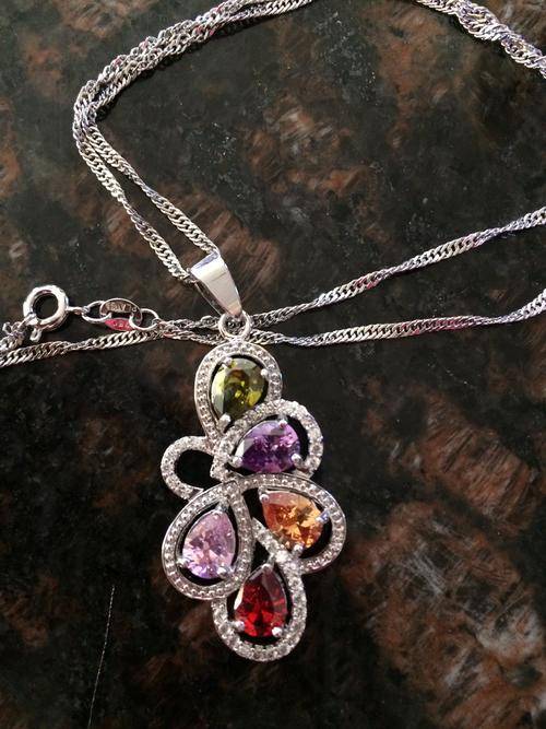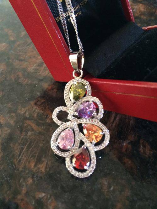 DAZZLING MULTI COLOURED GEMS PENDANT WITH FREE CHAIN