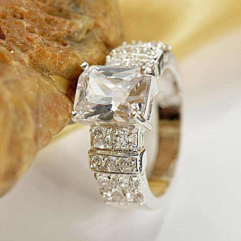 Dazzling Princess cut Clear white Sapphire 925 Sterling silver Ring Size 6-10