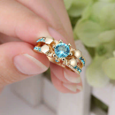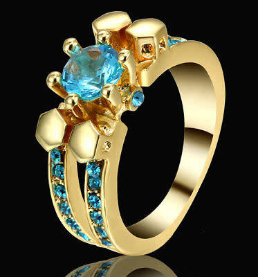 DAZZLING!! Yellow Gold Filled Ring With Simulated Aquamarine Size 7 US