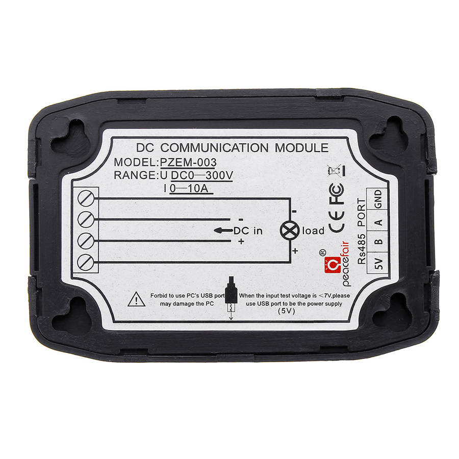 Specifications: Measurement accuracy: 1.0 grade Working temperature:-20a~ +60a Communication port:RS485 Power Supply:DC Certificate:CE,FCC Dimensions:90*60.5*23mm(L*W*H) Function and Display Format: Voltage 1. Measuring range:0.05-300V. (when the test voltage is 7V, please use the independent power supply mode) Resolution:0.01V. 2. Measurement accuracy:1%. Current 1. Measuring range:0.01-10A(PZEM-003) 2. Resolution:0.01A 3. Measurement accuracy:1% Power 1. Measuring range:0.1-3kW(PZEM-003) 2. Resolution: 0.1W 3. Measurement accuracy:1% Energy Consumption 1. Measuring range: 0-9999kWh 2. Resolution: 1Wh 3. Measurement accuracy:1% Over Voltage alarm 1. Voltage threshold can be set, divide into high voltage and low voltage threshold, when the measured voltage exceeds the threshold, it can alarm 2. The default high voltage threshold is 300V, the default low voltage threshold is 7V. Note: Do not use the USB port bring by your PC to be the independent power supply, otherwise it may damage your PC ! Package Included: 1 x PZEM-003 Communication Module