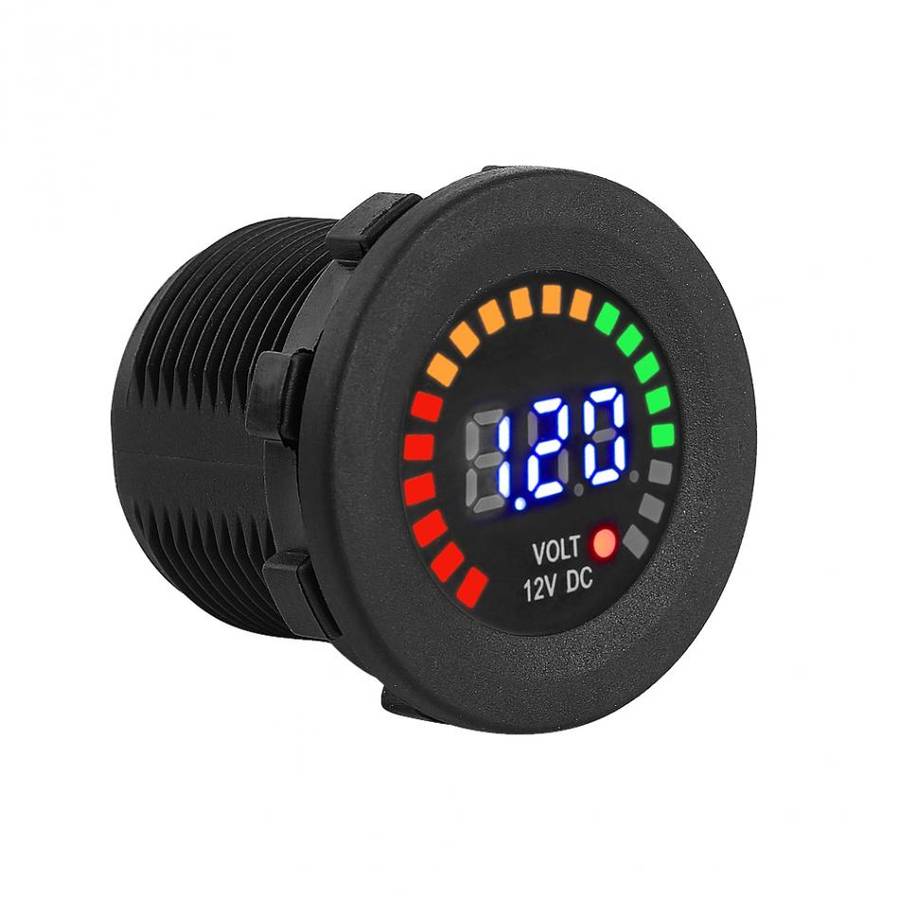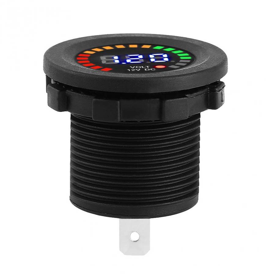 Features: 1. This voltmeter is used to monitor the storage-battery voltage and timely grasp the state of your battery voltage. 2. It will flash alert when the voltage reaches too high. 3. There is a LED display with 3 colors of indications to show different voltage status which helps to test the vehicle's battery status obviously and improve safety perfectly. 4. It is waterproof and durable for a long service time. 5. With twist and lock system, it is in mini size and easy to install. 6. It is universally fits for most DC 12V vehicles, such as motorbikes, cars, boats, ATV, UTV, camper, caravans, travel trailer etc.