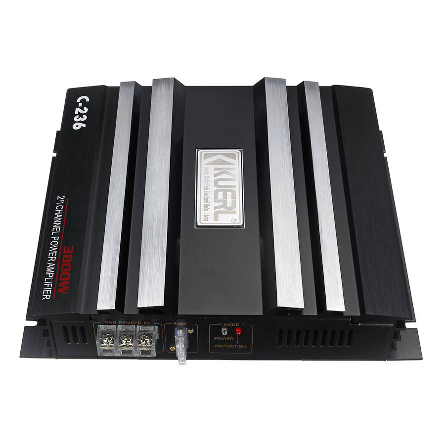 Specifications: Color: Black Material: Aluminum alloy Crafts: Brushed metal Workingt voltage: DC 12V Peak power: 3800W Channel: 2 Channel Load impedance: 2-4 SNR: >95 db Distortion rate: <0.02% Frequency: 20Hz-20KHz Sensitivity: 150mV Size: Approx. 24x20x5.5cm/ 9.44x7.87x2.17'' Features: 1. Slim design, simple and generous,in line with modern aesthetics. 2. Mini HiFi car amplifier board, 12V strong pure bass. 3. Bass and volume control, 3800 watts to output. 4. Low distortion supplies a clearer, stronger and more powerful sound. 5. 2 channel output, easy to load high-power passive speaker. 6. DC12V power in, suitable for your car. Package Included: 1x Car Power Amplifier