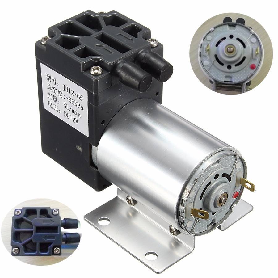 Description: DC 12V Vacuum Pump Suction Pump with Bracket Negative Pressure Suction Features: -Micro-pump is powered miniature DC motor drive, drive internal mechanical eccentric eccentric motion, driven by an eccentric movement inside the diaphragm reciprocates. Whereby the pump chamber fixed volume of air compression (compression suction port is closed, the exhaust port is formed to open slightly positive pressure), stretching (compressed exhaust port is closed, a negative pressure sucking mouth open), the pumping air intakes with the outside atmospheric pressure difference, at a pressure difference, the gas pressure (suction) into the pump chamber, and discharged from the exhaust port.