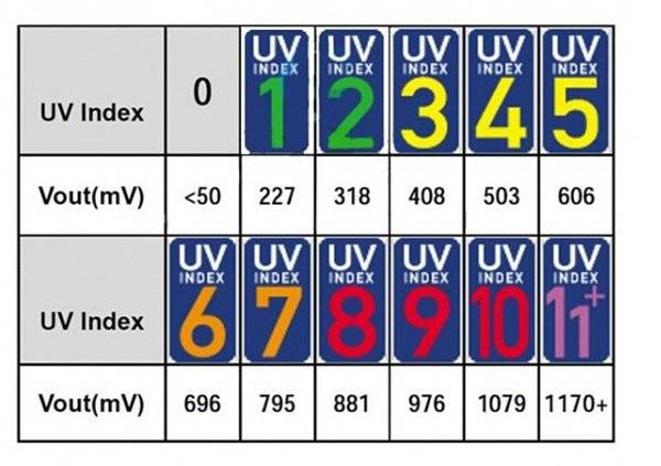 UV index chart: Package included: 1 x UV test sensor module