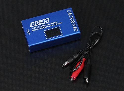 Hobbyking® DC-4S Balance Charger & Cell Checker 30w 2s~4s, simple to use Lipoly charge unit that will balance charge 2s~4s lipoly batteries via the balance lead, complete with overall & individual cell voltage display.