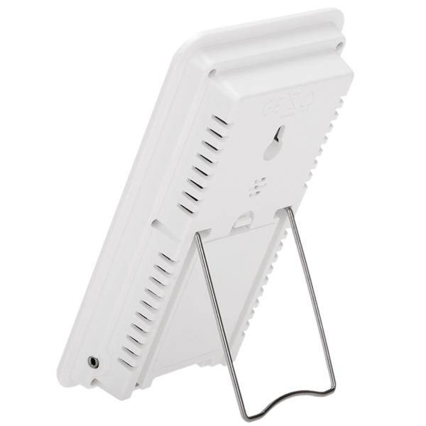 | Description:   DC-802 LCD Digital Thermometer Hygrometer Temperature Humidity Meter Clock Indoor Outdoor with Wired External Sensor With this indoor/outdoor thermometer-hygrometer, you can keep track of the temperature and humidity inside as well as outdoors. This device features a prominent LCD display that is easy to read, simultaneous measurement of indoor temperature and outdoor temperature, min/max temperature memory. You can put it on a desktop or hang it on the wall. Features: Indoor and outdoor temperature humidity display. °C / °F temperature switch display, can change the unit easily. Display the date, month, day and time, 12/24H clock and alarm clock function. Memorized MAX/MIN indoor temperature and humidity value automatically. With back stand and a hole at back side, convenient to place it on a desk or on the wall. With a wired external sensor that can be strung to the outside of your house to sense external temperature as well as a built-in sensor to simultaneously measure the indoor temperature. Specifications: Color: White + Gray Material: ABS Temperature Range: Indoor: -9.9℃~+50℃ (+14℉~122℉) Outdoor: -50℃~+90℃ (-58℉~194℉) Indoor Humidity: 20%RH~99%RH Sensor Cable Length: Approx. 200cm / 78.7in Powered by: 2 x 1.5V (AAA) Batteries (Not included) Product Size: 14.5 x 8 x 2cm / 5.7 x 3.15 x 0.79in (L x W x H) Product Weight: 108g / 3.82oz Package Size: 19.5 x 11 x 2.5cm / 7.68 x 4.33 x 0.98in (L x W x H) Package Weight: 148g / 5.23oz Package includes: 1 x Digital LCD Thermometer Hygrometer 1 x Wired External Sensor 1 x User Manual(English) Details pictures:         |