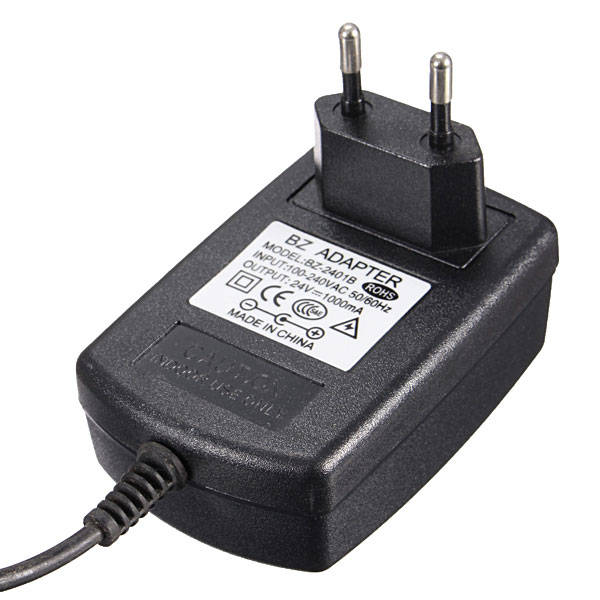 DC/AC 24V 1A Adapter Charger Power Supply for LED Strip CCTV Camera etc 2.5mm*5.5mm Features : Practical and durable. Provides steady current for your devices. Over voltage protection and over heat protection. Easy and convenient for to connect and use it. Compatible with devices whose input is DC 24V 1A, as mini TV, LED strip, Wireless Router, ADSL Cats, HUB, Switches, Security Cameras, Audio/Video Power Supply etc. CE certification. Specifications : Plug : 110VUS/ 230VUK/ 220V EU/ 230V AUplug for option~