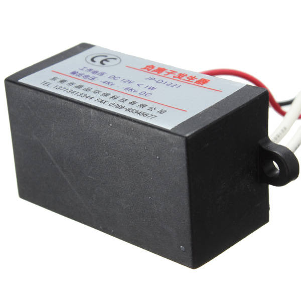 DC12V Output DIY Air Ionizer Airborne Negative Ion Anion Generator Power requirements : DC 12V Output voltage : -4Kv ~ -6Kv DC Power use : <1W Color : as the picture show Size : 42 x 25 x 21mm / 1.61" x 0.82" x 0.98" (L*W*H) Anion quantity : 15million pcs/cc air at distance 5cm Power Wires : Red(Positive electrode),Black(Negative electrode)