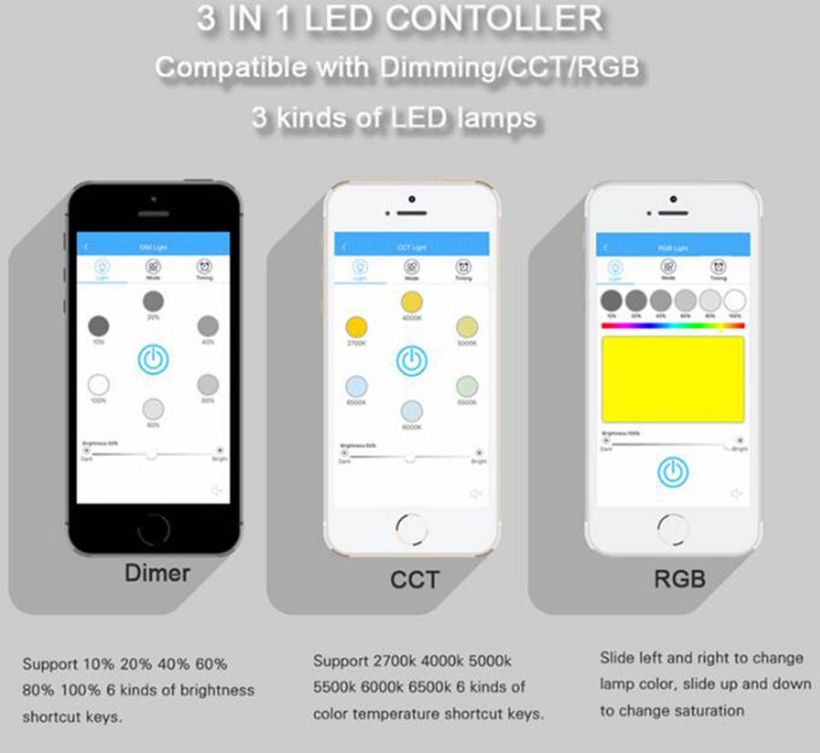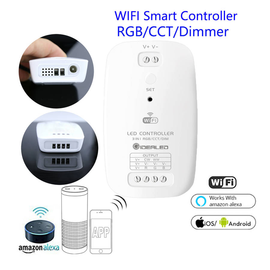 DC9V-24V RGB CCT Dimmer 3 in 1 WiFi Smart APP LED Strip Light Controller Work with Amazon Echo Alexa