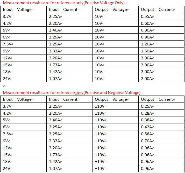 The maximum output power can reach 20W, but the maximum power will vary under different conditions. For details, please refer to the following table(10-80% of the maximum power is the most reliable):