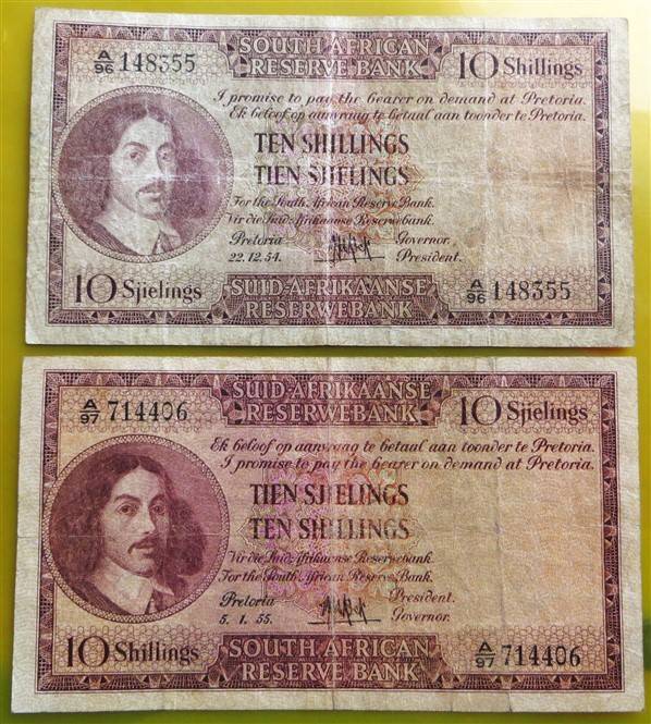 De Kock 10 Shillings Notes - Prefix A96 & A97 - Bid Per Note