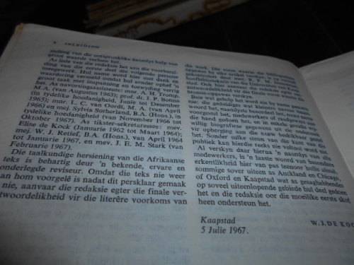 Nasionale Boekhandel 1968 1ste ed. DEEL 1 ex skool biblioteekboek, 2 of drie stempels, swaar hardeband, redelik goed gebind, rooi omslae nie meer stewig nie, binding is reggemaak op binne boek op titelbladsy met boektape, bladsye alles in binding, 933 bladsye met verbeteringe. Teks is skoon. Niks geskryf op bladsye sover ek kan sien nie. Voeg asb R60 by vir SAPO poskantoor of R99 Postnet na Postnet. Hardeband omslae ligte gebruik en hoekies effens ingedruk.