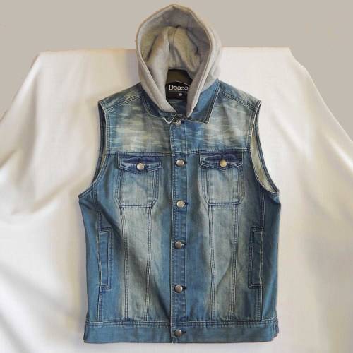 Deacon Australian brand denim sleeveless jacket with hoodie (detachable) size large
