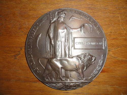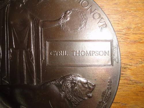 Death Plaque WW1 to Cyril Thompson Extreme Fine in frame