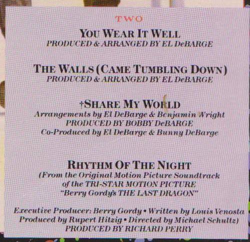 DeBarge , Rhythm Of The Night. This LP was made in 1985 by Motown (artone press) and is in excellent condition. The cover is in very good condition, with very slight creasing to the edge.