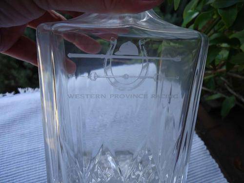 Stunning Handcut Crystal Decanter, Western Province Racing, perfect for the equestrian collector. This item has not been used.