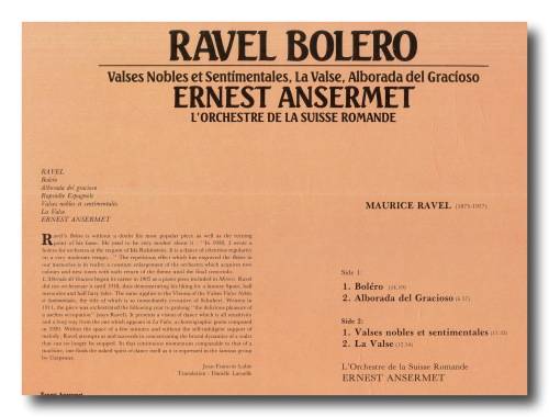 DECCA Master Collection: Ravel Bolero/Valses Nobles et Sentimentales/La Valse, Alborada del Gracioso - Ernest Ansermet - L'Orchestre De La Siusse Romande. Vinyl LP 33 - Cover slightly worn, LP in good condition - not been tested.