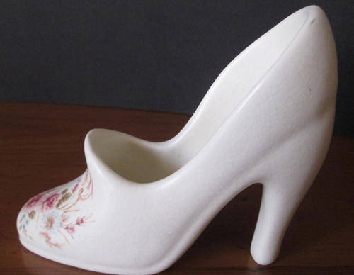 Decorative Crescent Potteries Shoe, F224 (looks like crazing on it, made to look that way??)