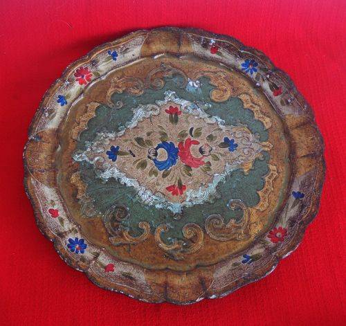 DECORATIVE FOLK ART WOODEN TRAY made Italy - Boho Style