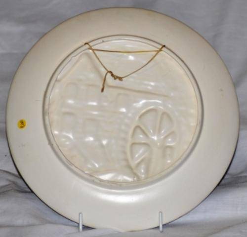 Very attractive wall plate, with the picture in relief. It measures 26 cm in diameter. It is in very good condition, with no cracks or chips or crazing.