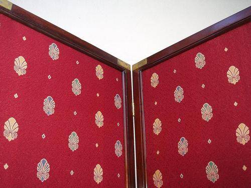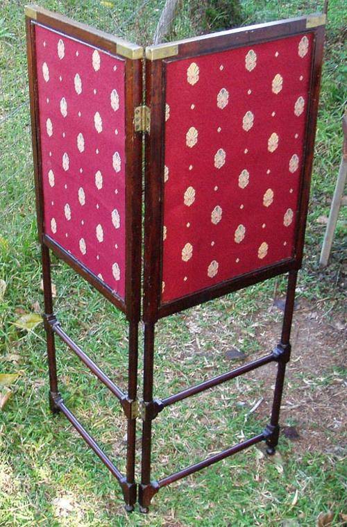 DECORATIVE VICTORIAN ERA~MAHOGANY WOOD AND FABRIC~TWO PART SCREEN