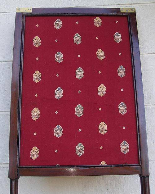 DESIRABLE ANTIQUE VICTORIAN ERA SOLID MAHOGANY SPINDLE LEG AND FABRIC, TWIN PANEL FIRE SCREEN WITH ORIGINAL BRASS HINGES AND BRASS EGDGE TRIM. THIS ITEM HAS BEEN FULLY RESTORED AND SOME SPLITS IN THE WOOD HAVE BEEN MENDED AS WELL AS TACKS ETC TO SECURE MAHOGANY BEADING TO THE PANELS. SOME SCUFFING FROM AGE TO AREAS OF THE FRAME, BUT INTACT AND STURDY. THE SCREEN SECTION HAS HAD REPLACEMENT FABRIC ADDED, BUT THE DESIGN IS WELL CHOSEN TO COMPLIMENT THE TYPE OF FABRIC MOST LIKELY USED ORIGINALLY. CHARMING ITEM.....IDEAL AS DISPLAY IN ANY ROOM TO ENHANCE A DULL CORNER ETC. HINGES ARE INTACT AND WORKING 100%. SCREEN MEASURES APPROXIMATELY 113CM HIGH X 42CM WIDE FOLDED, SO WOULD BE APPROXIMATELY 84CM WIDEST.