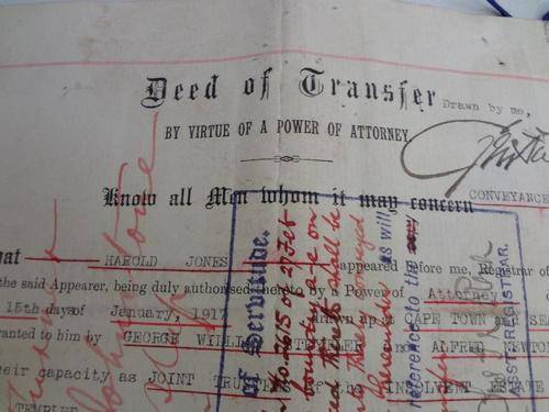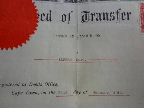 Deed of Transfer to Alfred Boag 1917 Cape Town - as per photo
