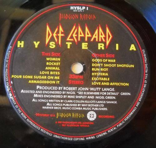 DEF LEPPARD-HYSTERIA-LP-EXCELLENT VINYL
