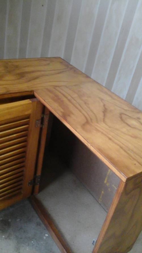DEFINITLY DIFFERENT. A COMPACT CORNER PINE CABINET. IT MIGHT ONLY BE PINE BUT ITS STURDY AND STRONG.