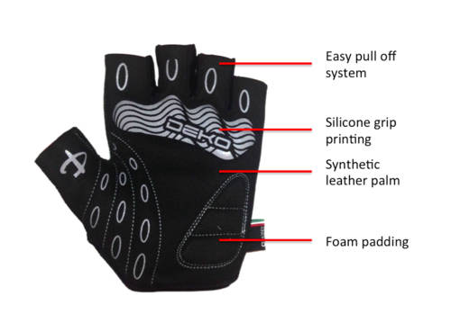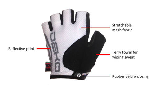 This cycling kit consists of the 'Maya' Jersey, 'Maya' bib shorts and white and black cycling gloves.