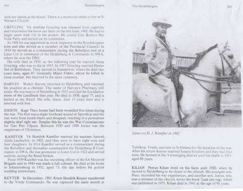 Veldkornet HJ Kamffer is mentioned on almost 50 pages of the book “Heidelbergers of the Boer War“ by Ian Uys.