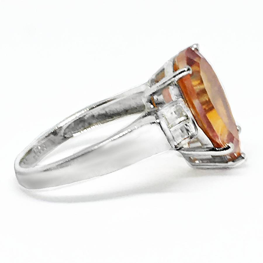 RARE NATURAL ORANGE/PINK FLASH RAINBOW MYSTIC TOPAZ AND WHITE TOPAZ RING SIZE US 7 / O