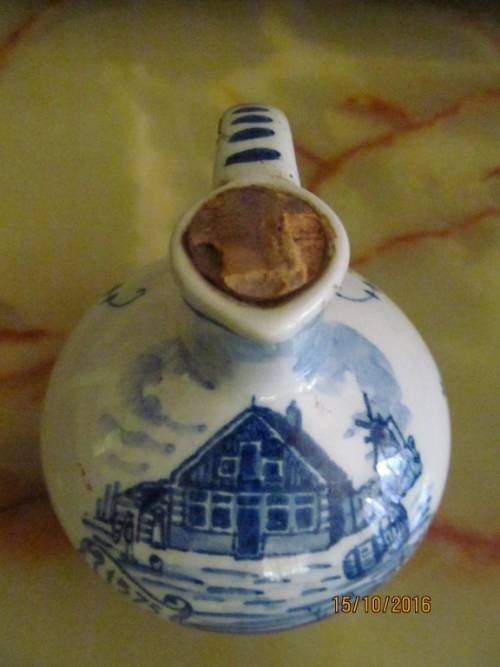 VINTAGE FINE DUTCH PORCELAIN BOTTLE/JUG/DECANTER - Marked "DELFT" - Still Sealed and Full making this an EXTREMELY RARE ITEM