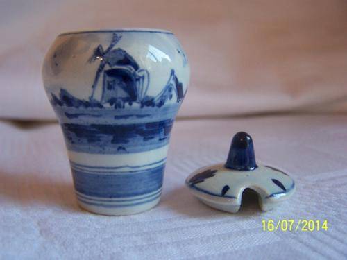 Pot height 4,5 cm , 6,5 cm with lid , base diameter 2 cm , circ at widest 13 cm .