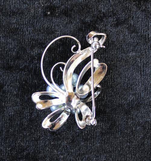 Delicate Silver brooch with Rare Blue Pearl. Marked
