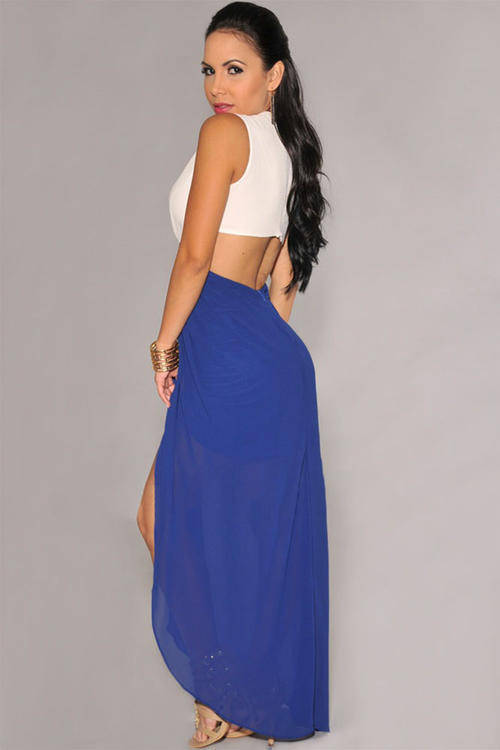 DELIGHTFUL DUAL TONE CUT AWAY SIDES MAXI DRESS